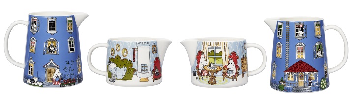The beautiful Moomin House pitcher is the perfect image of the house build by Moominpappa for his beloved family, and it features all the Moomins and some of their friends in different rooms of the house, while Moominmamma takes care of her garden.The Afternoon in Parlor small jug evokes the sweet quiet Sunday afternoons of childhood, when everything slows down, there is no worry in the world, and all you can hear is the grandfather clock and the turn of the pages when Moominpappa reads his newspaper.