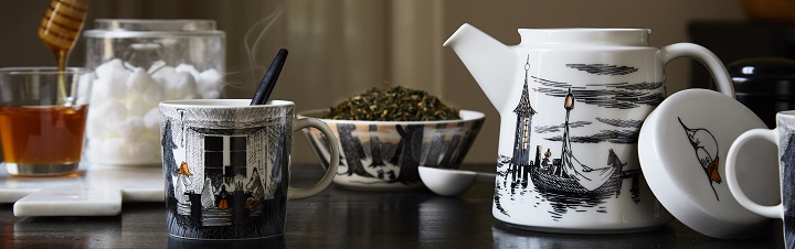 If you’ve heard of the Danish concept “hygge” (the art of well-being and making life cozy and enjoyable) this is how we would picture it on a long dark winter afternoon: tea with honey, biscuits, candle light, wood and beautiful Moomin dishes. The new set from Arabia, “True to its origins” has arrived in our shop.